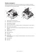PRINTER COMPONENTS Apart from the Operator panels, which are described in the next chapter, the B410d/ B410dn/B420dn/B430dn printers look similar from the outside. The important components are identified in the representations below. 2 16 3 11 12 10 5 6 9 7 15 8 13 14 4 1. Operator panel (B430dn shown) 2. Output Stacker (150 sheets, face down) 3. Output Stacker extension 4. Top cover release button 5. Multi Purpose Tray (only for B420dn, B430dn.; 50 sheets)(shown in open position) 6.