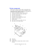 Printer components Apart from the Operator panels, which are described in the next chapter, the B4400, B4500, B4550 and B4600 printers look similar from the outside. The important components are identified in the representations below. 1. Operator panel (B4500, B4550, B4600 shown) 2. Top paper exit bin (150 sheets, face down) 3. Top cover release button 4. Top paper exit bin extension 5. Top paper exit bin extension paper guide 6. Paper tray content indicator 7. ON/OFF switch 8.