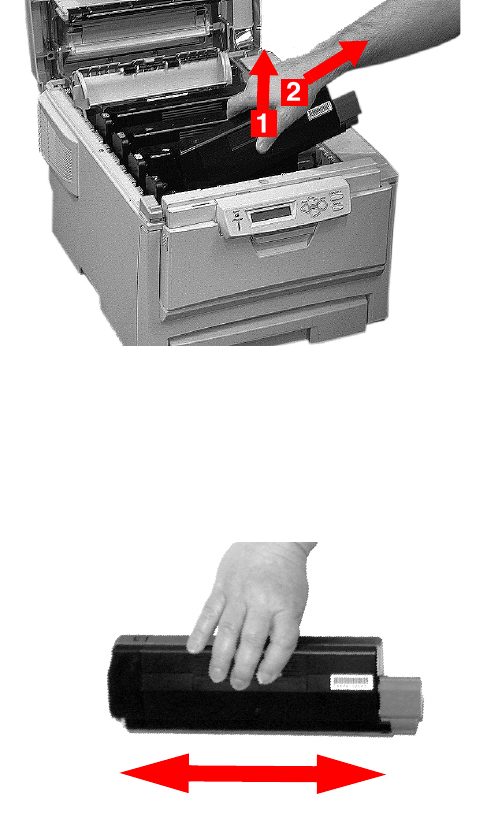 side to side to loosen and distribute the toner evenly