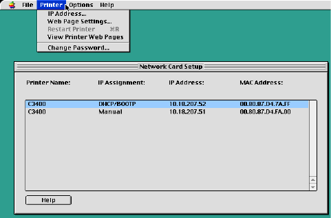 1. In the “Network Card Setup” pane, click to select the printer.