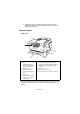 REAR VIEW This view shows the connection panel, the rear output stacker and the location of the optional duplex (two-sided printing) unit. 13 10 11 9 12 8 8. AC power socket. 11. Network interface.* 9. USB interface. 12. Location of optional duplex unit. 10. Network status lights. 13. Rear, face up, 100 sheet stacker. * The Network Interface has a protective “plug” which must be removed before connection can be made.