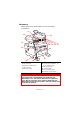 10. Schließen Sie zuletzt die obere Abdeckung, indem Sie fest auf beide Seiten drücken, sodass sie einrastet. FIXIERER AUSTAUSCHEN Der Fixierer befindet sich im Gerät unmittelbar hinter den vier Bildtrommeln. VORSICHT! Wenn das Gerät kürzlich eingeschaltet war, sind einige Teile des Fixierers sehr heiß. Gehen Sie äußerst vorsichtig mit dem Fixierer um und fassen Sie ihn nur am Griff an, der nur mäßig warm wird. Der heiße Bereich ist deutlich durch einen Warnaufkleber gekennzeichnet.
