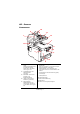 RÜCKANSICHT Dargestellt sind das Anschlussfeld und das rückwärtige Ausgabefach. 21 22 14 13 18 17 16 15 23 20 24 15 19 14. ADF-Kabel 19. Wechselstrom-Netzanschluss 15. Ein/Ausschalter 20. Rückwärtiges Ausgabefach, 100 Blatt, Vorderseite oben 16. Gleichstrom-Netzanschluss 17. ADF-Anschluss 18. USB-Schnittstelle 21. Netzwerkanschluss 22. Verbindungsdose 23. Flush-Verbindungskabel 24.