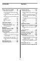 Contenido Sumário Acceso desde la unidad . . . . . 85 Información General . . . . . . . 85 Funcionamiento básico del panel de control. . . . . . . . . . . . . 86 El panel de control de la impresora 90 Colocación de los documentos para escanear . . . . . . . . . . . . . 91 Copiar . . . . . . . . . . . . . . . . . 92 Scan (Escanear) . . . . . . . . . . 93 Fax . . . . . . . . . . . . . . . . . . . 95 Impresión Dúplex . . . . . . . . . 98 Solución de atascos . . . . . . . . 99 Atascos del escáner (ADF) . . .