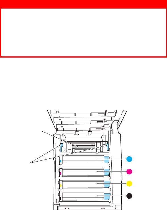 4. Holding the fuser by its handle (1), lift the fuser straight