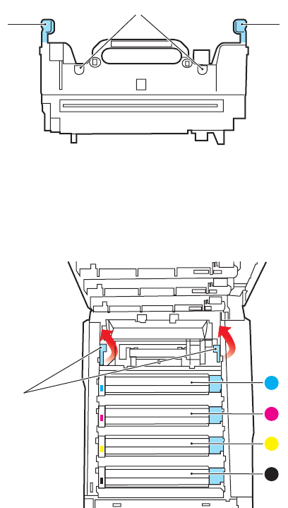 7. Lower the fuser into the printer, locating the two lugs (3)