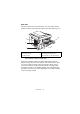 7. Notice that the memory board has a small cutout in the edge connector, which is closer to one end than the other. 8. Identify the RAM expansion slot (1) in the printer. 2 1 2 9. If the RAM expansion slot already contains a memory upgrade board, that board will have to be removed before you can install the new one. To remove it, proceed as follows, otherwise skip to step 10. (a) Identify the locking clips (2) at each end of the RAM expansion slot (1).