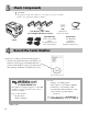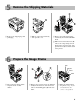 Remove the Shipping Materials □ Remove any shipping tape and packaging. □ Pull up on the release latch (1) and open the cover. □ Remove the cardboard shipping restraint (1) from behind the LED heads. □ Pull forward on the blue lever (2), remove the orange transport lock (3) from the end of the fuser, then push the lever (2) toward the back of the printer. 6 Prepare the Image Drums Cyan Magenta Yellow Black □ Lift out the four image drums and place them on a flat surface.