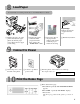 8 Load Paper For information on usable print media, see the Handy Reference Guide. Paper Gauge: Indicates the amount of paper left in the tray. □ Pull the paper tray out of the printer and adjust the paper guides (1) and rear paper stopper (2) for the size paper you are using. 9 □ Fan the paper (max. 530 sheets 20-lb. paper) and load it. Keep it below the “PAPER FULL” mark. □ If necessary, lift out the paper media indicator and reinsert it with the proper media size showing □ Push the tray back in.