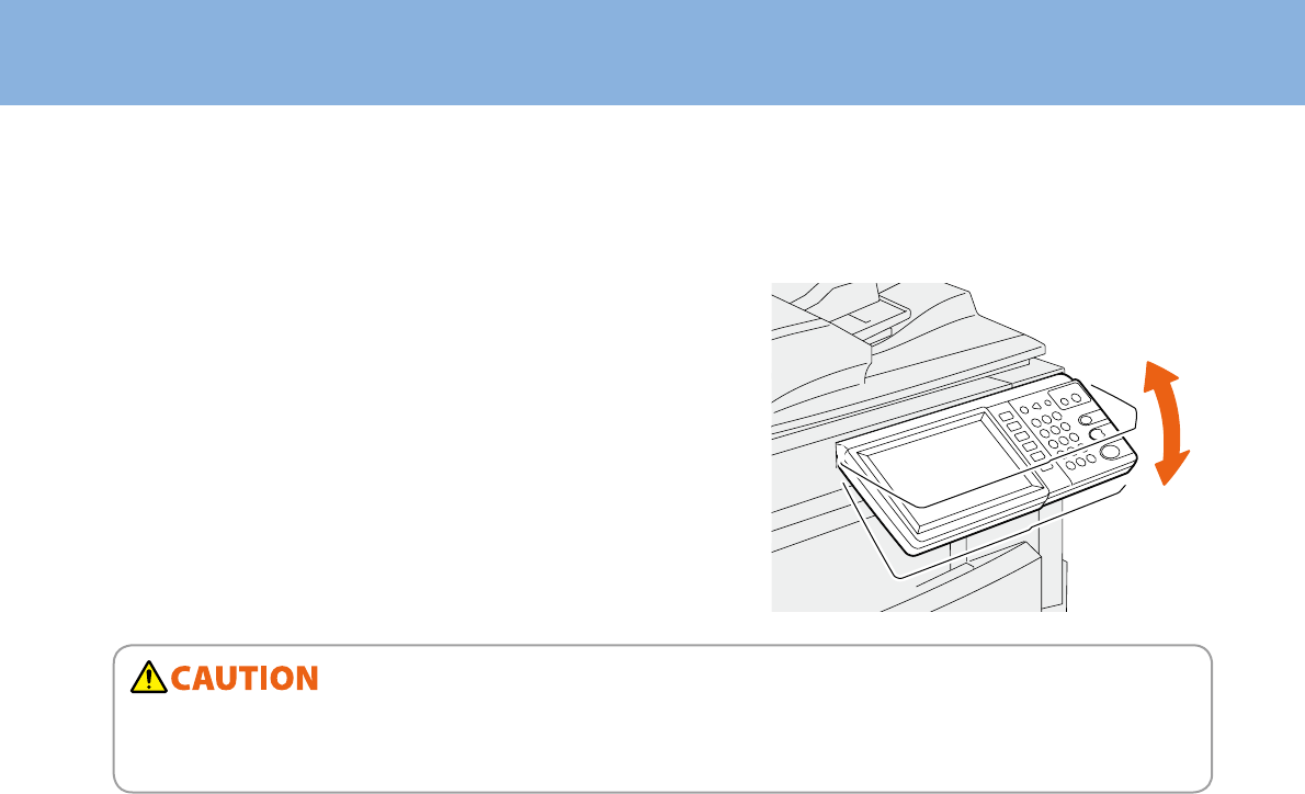When changing the angle of the control panel, be careful not to catch your hands in the gap between the equipment and