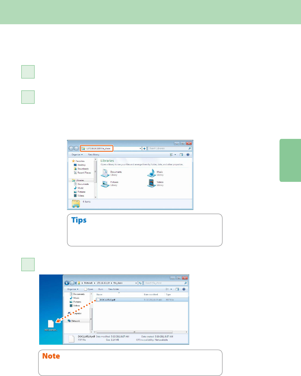 Format: \\[IP address of the equipment] \le_share