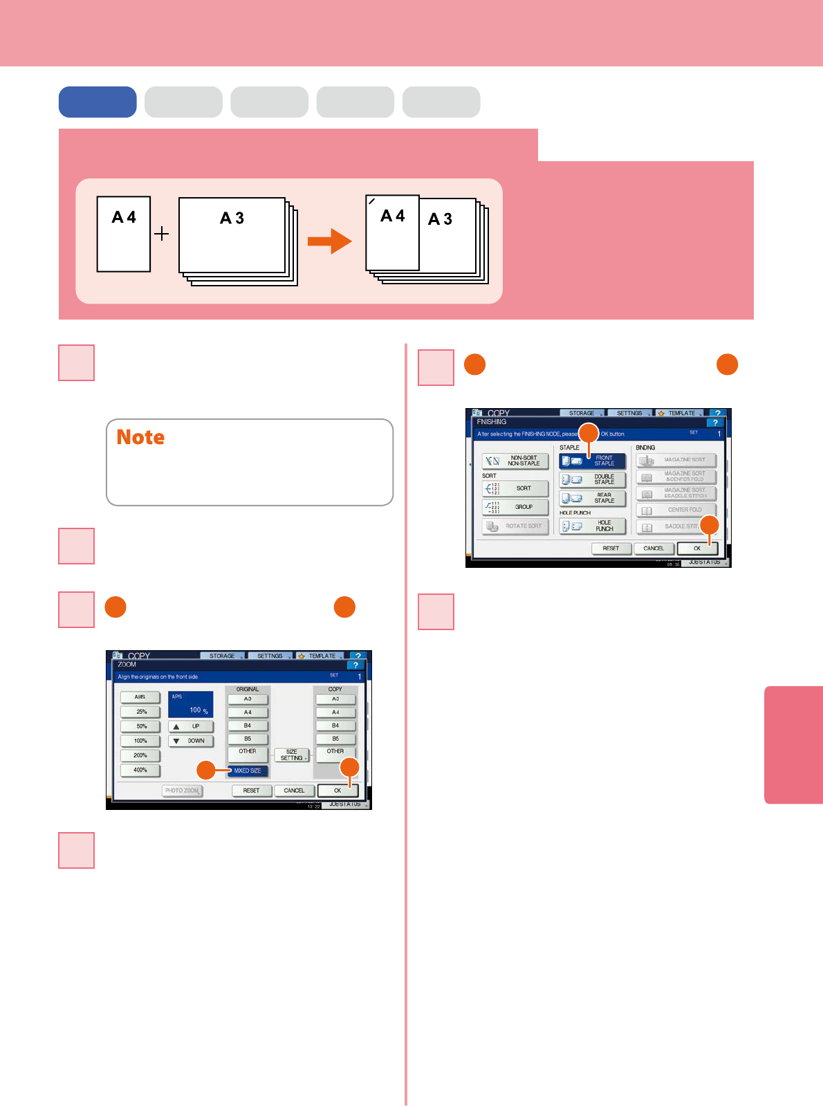 sheet, A3 or LD: 4 sheets) and staple