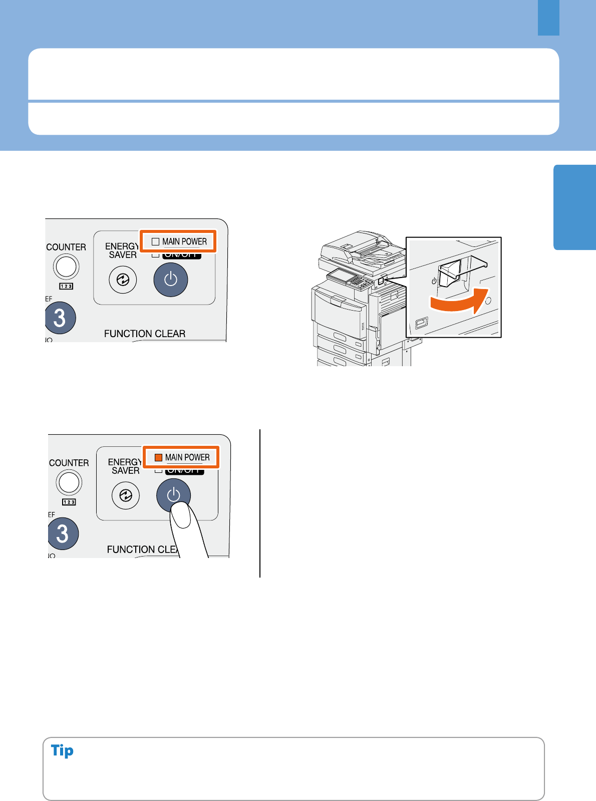 When the MAIN POWER lamp (red) on the control panel lights: