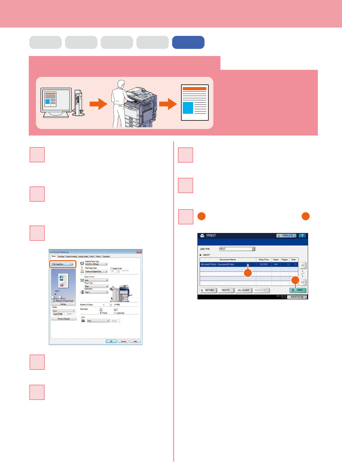 Select “Hold Print” for the job type in