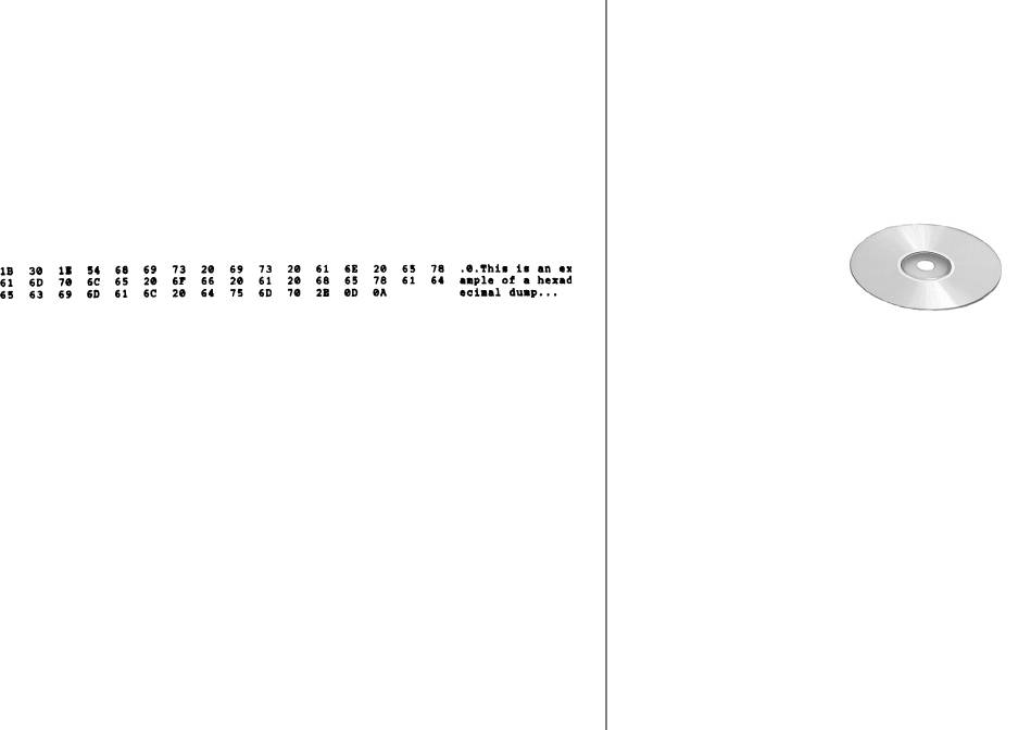 When the printer is placed in the Hexadecimal Dump Mode, all