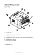 Contents Notes, Cautions and Warnings . . . . . . . . . . . . . . . . . . . . . . . . . . . . . . . . .5 Introduction . . . . . . . . . . . . . . . . . . . . . . . . . . . . . . . . . . . . . . . . . . . . . . .6 Printer features . . . . . . . . . . . . . . . . . . . . . . . . . . . . . . . . . . . . . . . . . . . 6 Printer Components . . . . . . . . . . . . . . . . . . . . . . . . . . . . . . . . . . . . . . . . .7 Front View . . . . . . . . . . . . . . . . . . . . . . . . . . . . . . . . . . . . . . . . .