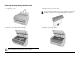 English Installing toner 1 Remove the tape and shipping insert from the image drum cartridge. 5 Insert the toner cartridge. 2 Shake the toner cartridge to evenly distribute toner. 3 Unwrap the toner cartridge. 6 Push the lock lever forward. 4 Remove the tape. 7 Close the printer cover.