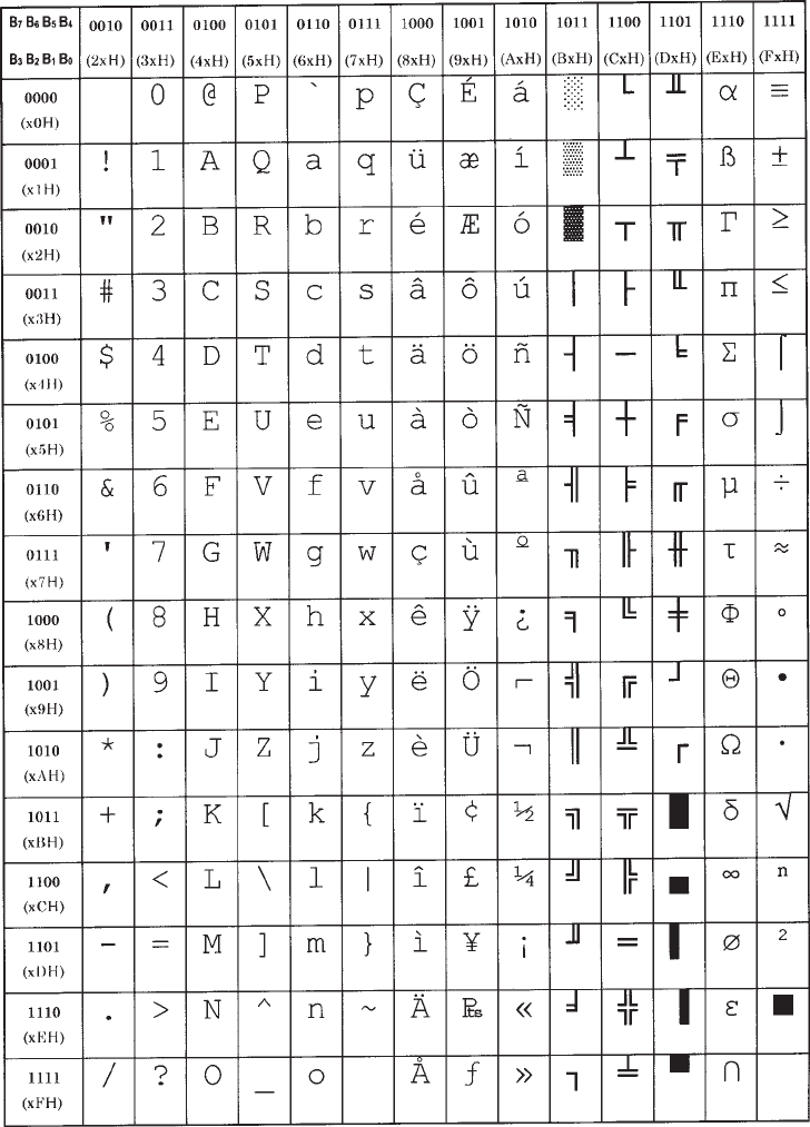 4 The blank space (20H, 7FH, FFH) indicates a space code.