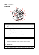 MFP overview Front view 10 11 12 9 13 1 8 3 7 6 2 5 3 4 REF. DESCRIPTION 1 Output stacker, face down Standard printed copy delivery point. Holds up to 250 sheets at 20-lb. US Bond (75 g/ m²). 2 Top cover release button 3 Multi purpose tray release handles 4 Multi purpose feeder (shown closed) For heavier paper stocks, envelopes and other special media. Holds up to 100 sheets of 20-lb. US Bond (75 g/m²) paper. 5 Paper tray Holds up to 300 sheets of 20-lb. US Bond (75 g/m²) paper.