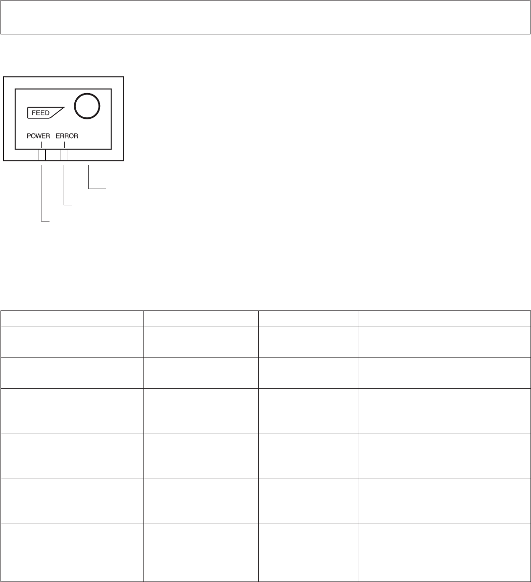 Paper out error ON ON (Orange) Automatically recovered by