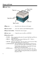 Name of Parts ■Front View Top cover Paper check window Operation switch Front cover Power switch ■Top cover .................... Open this cover when you set the paper. ■ Power switch .............. Press this switch to turn ON/OFF the printer. ■ Paper check window ... To check the status of paper. ■ Front cover ................. Open this cover to refill or set DIP-SW. ■ Operation switch • POWER .... When you turn on the power, the green light lights up. Refer to “Starting/Power”. • ERROR .....