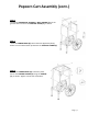 Popcorn Cart Assembly (cont.) STEP 11: Remove the pre-assembled screws from the HANDRAIL (N). Attach one of the HANDRAIL BRACKETS (M) to one end of the handle. Insert the screw and tighten. Repeat step above to attach the remaining bracket on the other side. STEP 12: Using four BOLTS (U), WASHERS (R) and NUTS (Q), install the assembled WORKING PLATFORM on the right side of the cart (same side as wheels).