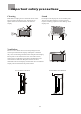 Import ant safety precautions Cleaning Stand Remember to unplug the AC cord from the AC outlet before cleaning the display unit. And do not use liquid cleaners or aerosol cleaners to clean the display. Do not place the display unit on an unstable place. The TV may fall resulting in serious personal injuries to nearby people as well as damage to the display unit. Ventilation Do not cover or block these vents and openings located on the top and back of the display.