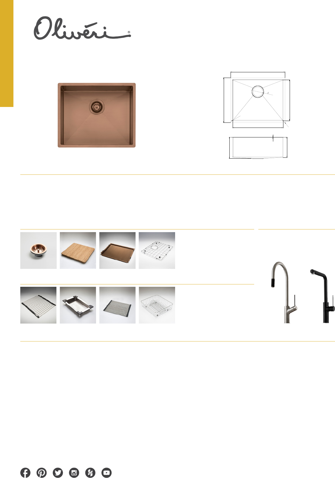 All dimensions given are approximate and should be checked prior to installation. See Oliveri installation instructions for installation details.