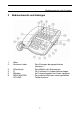 Bedienelemente und Anzeigen 2 Bedienelemente und Anzeigen 1. 2. Hörer Nummern-Index 3. 4. 5. 6. Zifferntasten R Mikrofon WAHLWIEDERHOLUNG Zum Eintragen der gespeicherten Nummern. Zum Wählen der Rufnummern. Für Funktionen in Nebenstellenanlagen. Im Freisprechmodus hier hinein sprechen. Zur erneuten Wahl der zuletzt gewählten Telefonnummer.