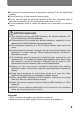 Warning: Incorrect use may cause a fire or electric shock. • Be sure to use an Olympus AC adapter. Olympus is not responsible for any damage caused by the use of other kinds of AC adapters. • Use an AC120V power source. • NEVER connect or disconnect the AC adapter with wet hands. • If the cord of the AC adapter is hot, smells like smoke or is emitting smoke, unplug it immediately and contact your nearest authorized Olympus service center.