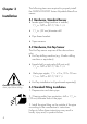 Chapter 3 Installation The following items are required to properly install the OMEGA FP-6000 Series Adjustable Brass flow sensor. 3.1 Hardware, Standard Sensor • female pipe fitting (weld-on or saddle) 11/2 in. NPT or ISO 7/1-Rc 1-1/2 • 11/4 in. (32 mm) diameter drill • Pipe thread sealant • Tape measure 3.2 Hardware, Hot-Tap Sensor The Hot-Tap sensor requires all the above items plus: • Hot-Tap drilling machine (e.g.