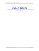 OME-A-826PG Software Manual [Win 95/98/NT] 1 Introduction The OME-A-826PG is a multifunction, 16 bits resolution A/D, D/A and digital I/O card. The feature of the OME-A-826PG are given as below: 1. A/D=16 bits, 16 channels(single-ended) or 8 channels(differential) 2. A-826PG : low gain (1/2/4/8), the analog input signal range configuration code is given in Sec. 4.1 3. DA=12 bits, 2 channels, 0-5V or 0-10V output by hardware JP1 setting 4. 16 channels TTL compatible digital input 5.