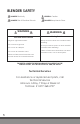 - BLENDER SAFETY DANGER Electricity GENERAL Caution DANGER Risk of Electrical Schock DANGER Keep Hands Clear WARNING WARNING Electrical Shock Hazard Moving Parts! Always cover the lid on the container when blending. Plug into a grounded outlet. Do not remove ground. Do not put hands, spoons or other utensils in container when blending. Do not use an adapter. Failure to follow these instructions can result in broken bones, cuts or other injuries. Do not use an extension cord.