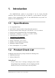 Table of Contents 1. 2. INTRODUCTION ........................................................................................................................4 1.1 SPECIFICATIONS ..................................................................................................................4 1.2 PRODUCT CHECK LIST ........................................................................................................4 HARDWARE CONFIGURATION ............................................................