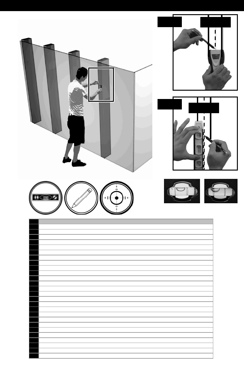 Repérez l'emplacement d'une poutre, puis marquez l'emplacement des bords et du centre de cette poutre.