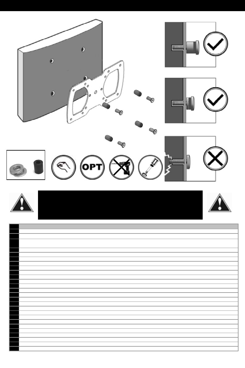 WHEN INSTALLING FLAT PANEL TV DO NOT OVER TIGHTEN SCREWS