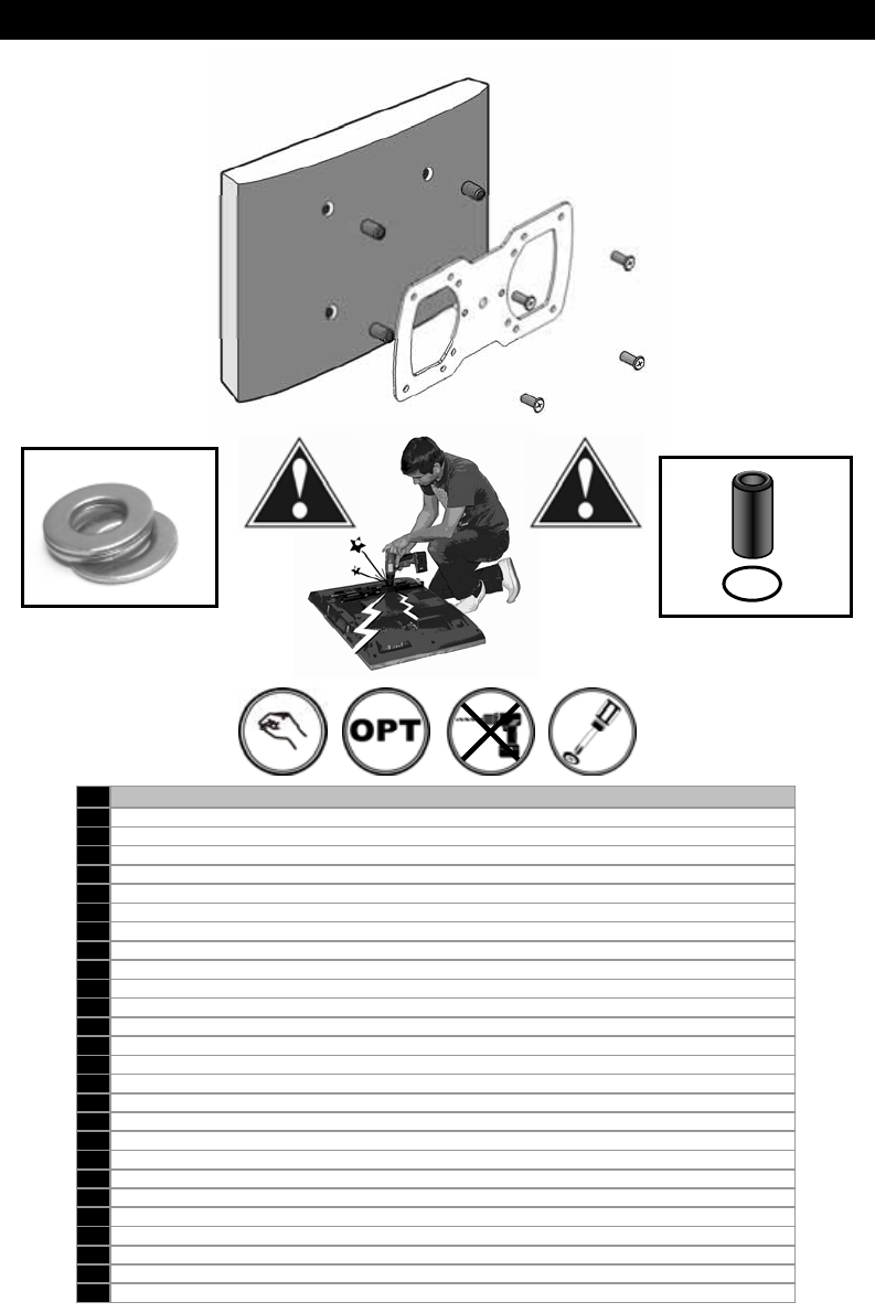 FR Utilisez les entretoises sur les trous de montage encastrés ou pour accéder aux entrées A/V
