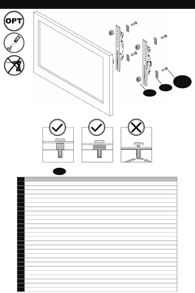DE Verwenden Sie Abstandhalter für zurückversetzte Montagebohrungen oder um A/V-Eingänge zu erreichen