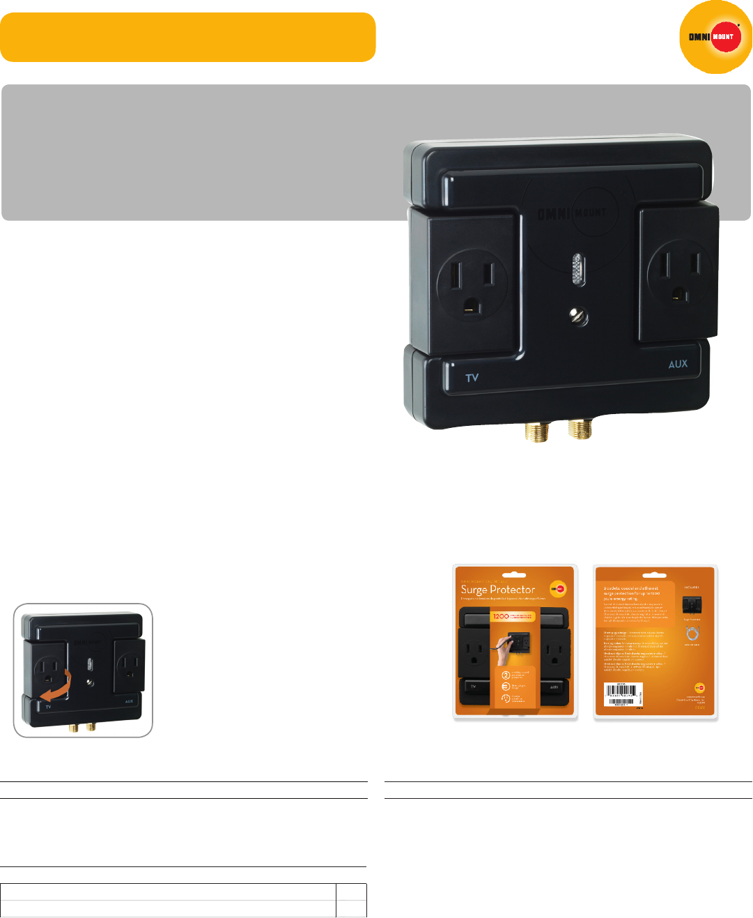 • 2 outlet and coaxial surge protector with 1200