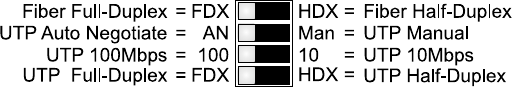DIP-Switch selects the duplex mode of the UTP port. When in the “FDX” position