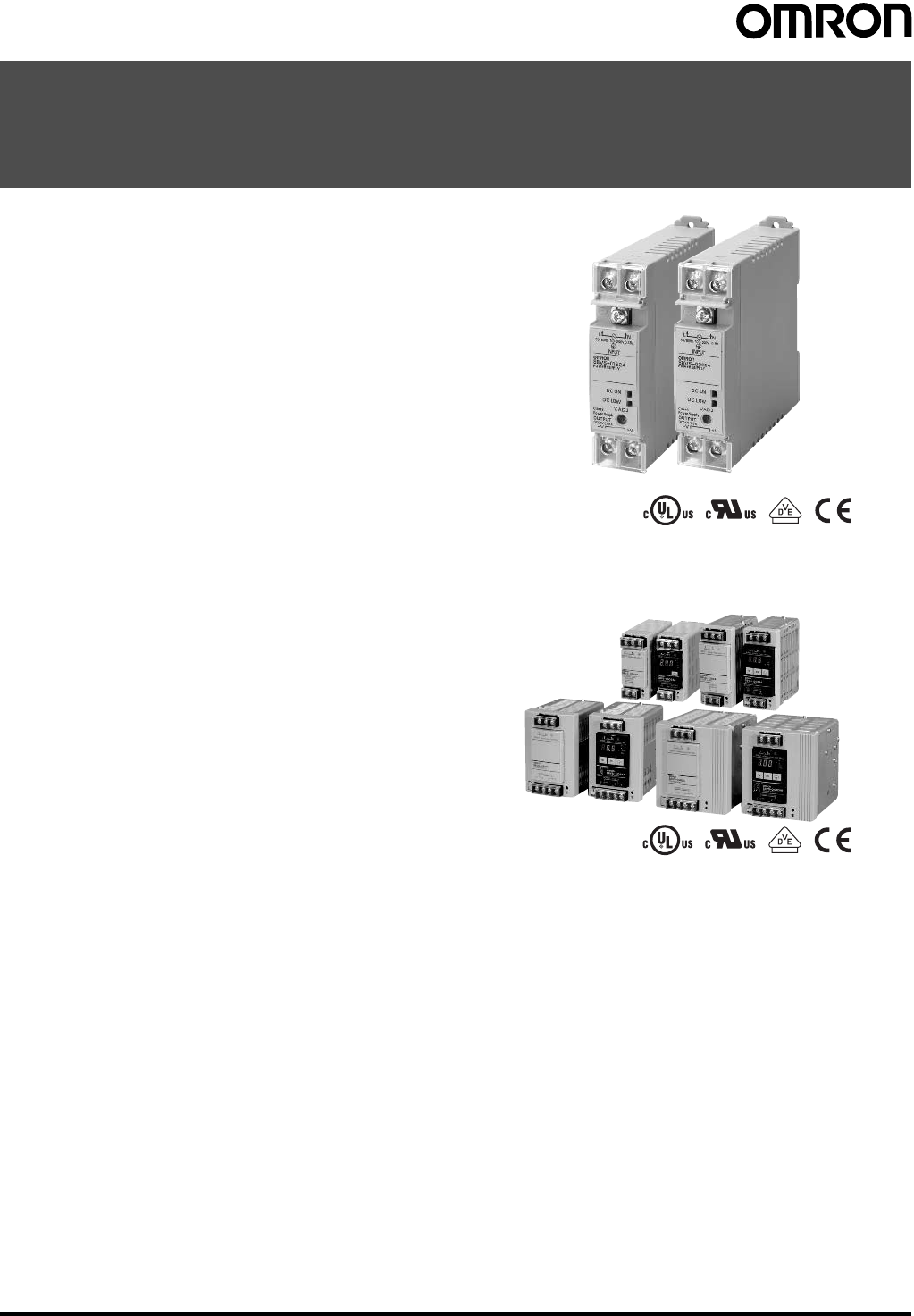 Switch Mode Power Supply S8VS (15/30/60/90/120/180/240-W Models) 15/30-W Models Compact, Thin Power Supplies That Mount Just About Anywhere to Contribute to Control Panel Downsizing • Compact, thin size: 22.5 × 85 × 96.5 mm (W × H × D). • Three mounting directions (standard, horizontal, facing horizontal). • Mounting directly onto the panel is possible. • Safety standards: UL508/60950-1/1604, CSA C22.2 No. 14/60950-1/213, EN50178 (= VDE0160), EN60950-1 (= VDE0805).