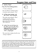 Program Date and Time 3. Set the "Date". Press the Time Setting button. • " / 1" (date) is displayed. • Press the Memory Call button and set the number representing the "Date". 4. In the same manner, set the "Hour" and "Minute". • The number representing the "Hour" is displayed in the 12-hour unit of morning and afternoon. (For the hour in the afternoon, PM is displayed.) 5. Lastly, the correct time can be set by pressing the Time Setting button according to the time signal when "00" is displayed.