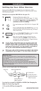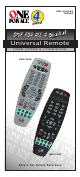 Quick Set-Up The instructions below and on the next page can be used to quickly install your new ONE FOR ALL. You can use the Quick Set-Up below with the codes listed on pages 11-23. If this doesn’t work, try the Quick Search on the next page. The Quick Search can also be used even if your brand is not listed at all. Make sure you install the batteries in your ONE FOR ALL before following the instructions below. Make sure your device is switched on (not in standby). 1.