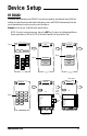 SETUP BY CODE Find the code for your device in the Set-Up Code section (starting on page 128). Codes are listed by device type and brand name. The most popular code is listed first. Make sure your device is switched on (not in standby). Newly captured Manufacturer’s codes are available for customer access on our web site www.oneforall.com. 1. Tap on Setup key (upper left corner). 2. Tap on DEVICE SETUP. NOTE: To return to a previous menu, tap on the ESC key.