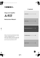 *En_A933_01.fm Page 1 Monday, December 20, 2004 1:23 PM Contents Integrated Amplifier Introduction .................................... 2 A-933 Instruction Manual Connections ................................. 10 Enjoying Audio Sources.............. 17 Thank you for purchasing an Onkyo Integrated Amplifier. Please read this manual thoroughly before making connections and plugging in the unit.