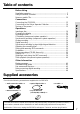 Table of contents Before Using Supplied accessories ........................................................................... 7 Using the remote controller ................................................................ 8 Notes on usable CDs ........................................................................ 10 Connections Operations Inserting a disc ................................................................................. Changing the display ..............................................