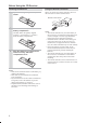 Before Using the CD Receiver Installing the Batteries 1 Open the battery compartment, as shown. Using the Remote Controller When you operate the remote controller, point it at the CD receiver’s remote control sensor. Remote control sensor 5 x. p ro Ap ft.) 6 (1 2 3 Insert two batteries (R6 / AA) into the battery compartment. Carefully follow the polarity diagram (positive (+) and negative (–) symbols) inside the battery compartment.