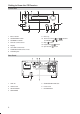 Getting to Know the CD Receiver Front Panel 1 INPUT button 9 2 ON/STANDBY button Disc tray 3 STANDBY indicator 10 Previous / Next [ or PRESET [ ] / [ 4 Remote control sensor 11 Stop [ ] button 5 Display 12 Play/Pause [ 6 VOLUME control knob 13 Open/Close [ 7 TONE/BALANCE button / knob 8 PHONES jack ]/[ ] buttons ] buttons ] button ] button Rear Panel LINE IN 5 SUBWOOFER PRE OUT 2 VIDEO OUT 6 Power cord 3 AM ANTENNA 7 FM ANTENNA 4 SPEAKERS 1 8