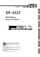 Introduction Multichannel Connections DV-S525 DVD Player Instruction Manual MPEG OPEN /CLOSE DIMMER STANDBY/ON PAUSE Multichannel PLAY STOP PHONES Basic Playback MPEG PHONES LEVEL POWER ON OFF MIN DVD / VIDEO CD / CD PLAYER MAX DV-S 525 THIS DVD PLAYER IS MANUFACTURED FOR PLAYBACK OF REGION 3 (SOUTHEAST ASIA) ENCODED DVD SOFTWARE. USE OF SOFTWARE NOT INTENDED FOR REGION 3 PLAYBACK MAY RESULT IN UNDESIRABLE PLAYER PERFORMANCE.