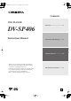 DV-SP406_En.book Page 1 Friday, May 9, 2008 12:00 PM Contents DVD PLAYER Overview .......................................... 2 DV-SP406 Instruction Manual Connections and Setting up ........ 15 Playback Operation....................... 24 Thank you for purchasing an Onkyo DVD Player. Please read this manual thoroughly before making connections and plugging in the unit.